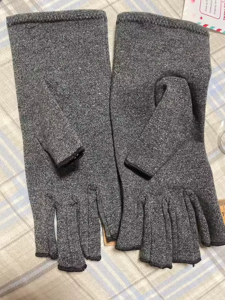Yes — that's the whole point. The fingerless design leaves your fingertips completely free. You can make tea, use your phone, type, cook, garden, knit, and button a shirt without removing them once. Hundreds of our customers wear them through full working days, including nurses on 12-hour shifts. Most women say within a few days they forget they're wearing them entirely — until someone asks.