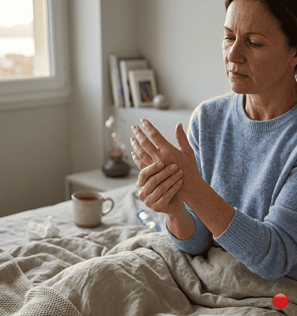 Yes, and for many women overnight is where the biggest difference comes from. The main reason your mornings are so difficult is joint fluid that builds up while you sleep, undisturbed for eight hours. Wearing Handly overnight gently maintains circulation and prevents that buildup before it starts. The fabric is breathable enough that your hands won't overheat, and the fit is snug but never restrictive. Start with one or two nights and pay attention to how your first hour feels. Most women notice the difference before the end of the first week.
